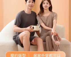 NT$1399情侶款涼感睡衣 夏季冰絲螺紋薄款 短袖長褲可外穿 情侶家居服套裝詳情 - 新款黑塑鋼泥NT$998
