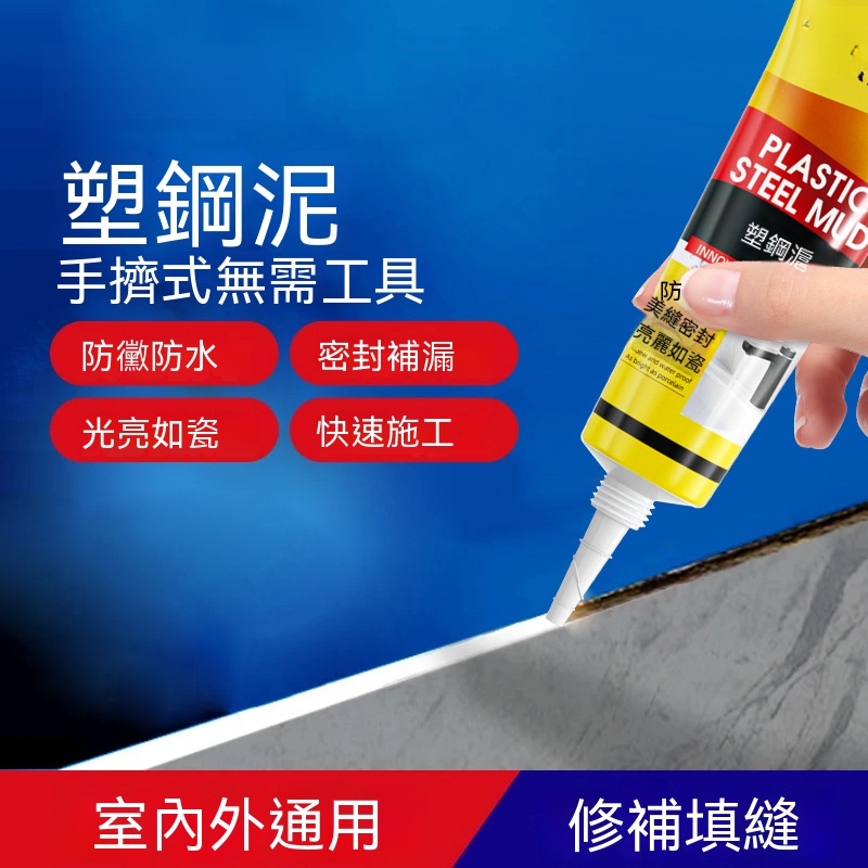 黃黑塑鋼泥,白色防霉真牢固!馬桶水槽縫,一填就密封。廚房浴室不怕濕,告別黑霉斑!陶瓷膠級封邊,防水耐用十年少煩惱~